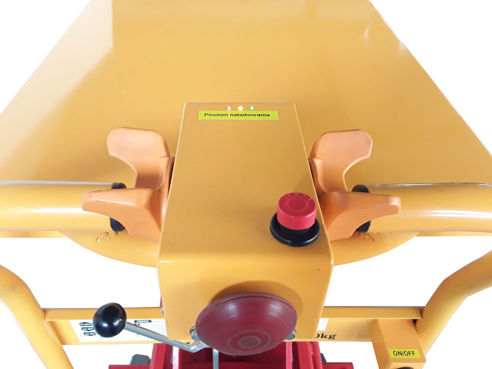 Oferowany przez nas wózek jest wyposażony w skrzynię akumulatorową, która zabezpiecza ogniwa przed działaniem czynników zewnętrznych (np. wilgoci). W jego skład wchodzi agregat hydrauliczny, który jest zasilany elektrycznie. Tłoczony przez niego czynnik roboczy oddziałuje na zabudowane wewnątrz siłowniki, dzięki czemu po podniesieniu nożyce są zabezpieczone w określonej pozycji przy pomocy zaworu.